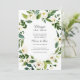 Anuncio de Postponer la Boda para informar a los invitados que la fecha de su evento será cambiada. Personalice con su redacción - se puede utilizar para cualquier evento, como bodas, ducha de novia, ducha de bebé, etc. Con ramas de vegetación de acuarela y flores blancas que barren las esquinas del diseño. Personalice con su información o haga clic en "Haga clic para personalizar aún más" para editar estilos de fuente, tamaño y colores.