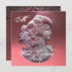 Elegante diseño de monograma de damasco en colores rosa, blanco y burgundy rojo. Joyas de camafeo antiguas con un perfil de mujer hermosa con cabello largo adornado con uvas y vides para la cosecha de viñedo. Parte de "Frutas de la temporada". Fácilmente personalizable para fiestas de cumpleaños, aniversarios y muchos otros eventos. Es perfecto para nutricionistas, dietistas, catering, servicio de alimentos, preparación o restaurante, catering, industrias vinícolas.
