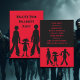 Plantilla de invitación de fiesta de Halloween con muerte a pie. Negro y rojo con niños zombis diseño en ambos lados con título fiesta en la parte delantera e información fiesta en la parte posterior. Esto también se ofrece como descarga instantánea.