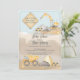 Creado con una acuarela silenciosa menos tradicional, este niño diseño "Baby Shower" incluye un camión de basura y una excavadora de fondo en un sitio de construcción con el título "Precaución del bebé bajo construcción". El palet silenciado se continúa en la parte posterior con un patrón de rayas diagonales gris y amarillo más suave. Diseño compuesto por Holiday Hearts Designs (derechos reservados).