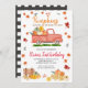 Red Truck Fall Birthday Party Hay, Leaves, Pumpkin, invitar puede ser usado para el cumpleaños de cualquier invitación de edad.