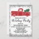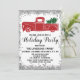 Celebra la temporada de fiestas con este camión rojo festivo con una invitación a la fiesta de Navidad verde. Los detalles del fiesta están escritos en una tipografía de escritura negra caprichosa y audaz con un purpurina plateado que brilla el borde y el fondo blanco. ¡Esta invitación es perfecta para unas vacaciones / Navidades / fiestas de invierno!