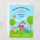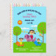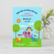 Celebra el segundo cumpleaños de tu niñita con esta invitación geométrica y moderna, con la chica de cumpleaños y sus amigos montando autos eléctricos en el parque del jardín público: ¡un gato, un elefante y un pato! El fondo de esta colorida invitación a la fiesta se caracteriza por puntos coloridos que parecen confeti festivo y un sol sonriente brillante. Es fácil personalizar esta simple pero linda invitación a la fiesta con tus propios detalles.
