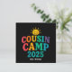 Celebre el Cousin Camp 2025 con este vibrante diseño perfecto para vacaciones de verano, viajes familiares y fiestas de fogatas. Ideal para los brigadas de primos que aman acampar, hacer cruceros y hacer recuerdos inolvidables juntos.