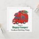 Un vehículo rojo verdaderamente feliz del campista se carga abajo con el equipo de la diversión. Personalice muchos o nuestros objetos del regalo con el nombre de su propio pequeño campista para un presente verdaderamente especial.