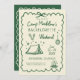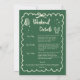 Este rústico campamento de solteros invita a los novios a celebrar la boda con un elegante marco de color verde ondulado dibujado a mano y un detalle de arco de moda. El frente marca la tónica con su diseño minimalista y de moda, mientras que el reverso incluye una distribución itinerante que permite a los clientes organizarse para las fiestas de fin de semana. Perfecto para novias que planeen una escapada en cabaña, un viaje con glamour o un retiro en el bosque, esta invitación combina el encanto rústico moderno con detalles prácticos, todo en una tarjeta de bonito diseño.