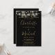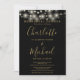 Elegante invitación a la cena de ensayo en negro y oro con luces de cuerdas de bonito y nombres de estilo característico. Esta elegante invitación puede ser personalizada con su información en letras de moda. Diseñado por Thisisnotme©