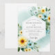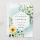 Ethereal watercolor artistry brings this romantic design to life. A delicate palette of canary yellow and soft teal blossoms against a pale minty wash. Lush green foliage intertwines with painterly daisies and vibrant blooms, evoking the fresh feeling of a sunlit spring meadow.