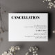 Un anuncio de cancelación de boda en blanco y negro en un diseño limpio, minimalista y sin rodeos para informar a sus invitados que la boda ya no se llevará a cabo.