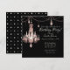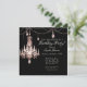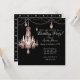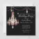 PALETA DE COLORES: negro, crema y rosa pastel COLECCIÓN DE DISEÑO: Esta invitación de fiesta de cumpleaños para niña femenina fue diseñada con una ilustración de un antiguo candelabro francés tallado y grabado con cristales ornamentados que caen del techo y perlas rosadas y crema que cuelgan encima. El texto es una mezcla de una caligrafía elegante preimpresa con grandes florituras, floreos y espirales, y una fuente de título en mayúsculas nítidas. Perfecto para homenajear a tu "princesa" favorita. Agregas el texto personalizado de tu invitación fácilmente usando los campos de la plantilla.