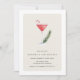 Invite a amigos o colegas a celebrar la temporada con estas elegantes invitaciones para fiestas de cócteles. El diseño presenta los detalles de tu evento con letras grises de moda, con un ilustracion acuarela de un cóctel martini rojo con una guarnición de caña de caramelo a rayas y una rama de pino al lado. Personalizar esta elegante invitación con tu tipo de evento, lo que lo hace perfecto para Navidades fiestas, vacaciones, eventos corporativos, fiestas de cócteles de vacaciones y más.