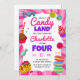 ¡Celebra el cuarto cumpleaños de tu pequeña dulce en una mágica Tierra de Velas! Esta caprichosa invitación presenta un diseño luminoso y colorido con dulces y caramelos a la carta. Es perfecto para un fiesta lleno de quequitos, copas y todo lo dulce!