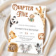 Celebra un nuevo hito con esta invitación de cumpleaños 5 de este libro de cuentos de safari de la jungla. Diseñado con adorables animales de safari en acuarela (león, jirafa, elefante, cebra), brillantes ilustraciones de cuentos y exuberante vegetación de la jungla, este mágico diseño es perfecto para marcar el Capítulo Cinco en la historia de su hijo. Texto editable - personalizar con el nombre, edad y detalles del fiesta de su hijo. Impreso en cartuchos premium con múltiples tipos de papel, formas y tamaños. Ideal para fiestas de cumpleaños, temas de selva safari o celebraciones de 5 noches silvestres. Haz que tu hijo cumpla 5 años con esta encantadora invitación al safari con cuentos - ¡donde cada cumpleaños es un nuevo capítulo!