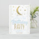 Invitación Caprichosas Estrellas Luna Dorada Azul Claro Cumpl