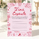 💗🎀 Crea un recuerdo significativo con este adorable juego de la cápsula del tiempo para la fiesta de revelación de bebé. Diseñado en una paleta romántica de San Valentín en rosa, esta tarjeta dibujada a mano presenta corazones dulces, lazos caprichosos, garabatos encantadores y detalles suaves de coqueta que complementan perfectamente el tema de la fiesta de revelación "Un pequeño corazón".