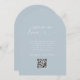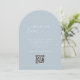 Elegante, Clásico, Monograma, Galería de Fotos en la web, Código QR, Elegante, Azul Polvo, Tarjeta de mesa para boda. Personalizado, sitio web de galería de fotos, código QR escaneable y mensaje para invitados. Personalízalo para que coincida con el estilo único de tu boda.