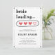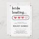 Sencilla y minimalista novia cargando la invitación a la ducha de novias con corazones rojos. Personalízalo con los detalles de tu evento.