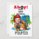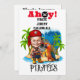 Caricatura de niños piratas en el sexto cumpleaños del Pirata de la isla del tesoro. Añade encanto a tus suministros fiestas con esta adorable caricatura pirata. Árboles tropicales, olas oceánicas y un loro hacen que sea perfecto para cumpleaños, fiestas disfrazados o búsquedas de tesoros. Inserta la foto del retrato de tu propio Pirata y tu propio texto.