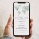 De este modo, la fecha incluye un mapa del mundo de las acuarelas verdes de sabio, una sencilla combinación de fuentes y una foto opcional al fondo con un espacio para el sitio web de su boda. De este modo, la fecha es perfecta para su viaje, destino o evento o boda con temática de aventura. Para cambiar la ubicación del corazón, desplácese hacia abajo en la sección de personalización y seleccione la opción azul "clic en el personalizar más adelante".
