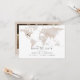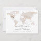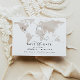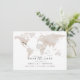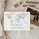 De este modo, la fecha incluye un mapa del mundo de las acuarelas beige, una sencilla combinación de fuentes y una foto opcional al fondo con un espacio para el sitio web de su boda. De este modo, la fecha es perfecta para su viaje, destino o evento o boda con temática de aventura. Para cambiar la ubicación del corazón, desplácese hacia abajo en la sección de personalización y seleccione la opción azul "clic en el personalizar más adelante".