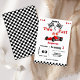 ¡Una invitación encantadora para la celebración del cumpleaños de su hijo! El tema de dos autos de carreras Fast Red incluye un auto rojo, una bandera de carreras de autos y llamas. ¡Puede PERSONALIZAR fácilmente este diseño con su información! Si necesita coordinar ELEMENTOS DE COINCIDENCIA, consulte nuestra colección o tienda coincidente.