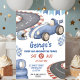 Carreras Azul Retro Cumpleaños Primera Invitación Lap, Primer Lap Alrededor De La Pista Invitación De Cumpleaños, Niños De Carro De Carrera Editable Primer Cumpleaños