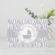 Tinta de cebra gris y blanco, con acentos lavanda y carruaje de bebé de polka gris y blanco con aspecto 3D y tarjeta de invitación a cinta para una ducha de bebé chica.
