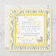 Estampado de zebra gris y blanco salvaje y dulce con acentos amarillos y cochecito de bebé del lunar con el arco 3D-look y cinta para una tarjeta de la invitación de la fiesta de bienvenida al bebé del muchacho.