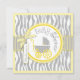 Estampado de zebra gris y blanco salvaje y dulce con acentos amarillos y cochecito de bebé del lunar con el arco 3D-look y cinta para la tarjeta de la invitación de la fiesta de bienvenida al bebé de los gemelos.