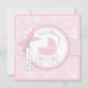 El carro de bebé y el arco 3D-look y la cinta dulces con el copo de nieve imprimen para una tarjeta de la invitación de la fiesta de bienvenida al bebé del chica.