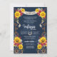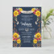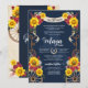 charro occidental hermoso tema rústico para quinceañera o celebración de cumpleaños. Este diseño presenta girasoles amarillos brillantes y ricas rosas rojas, con un fondo azul marino de personalizable y acentos rústicos occidentales. ¡personalizable total para cualquier tipo de evento!