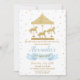 Invitación Carrusel de azul y oro Primer cumpleaños