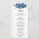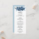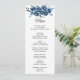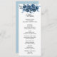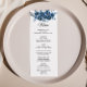 Esta moderna carta floral de flor para la cena es perfecta para una boda de destino. Este elegante diseño floral, pintado a mano, está decorado con flores de color azul, azul oscuro y añil con hojas verdes que representan una majestuosa belleza natural. Este menú se puede utilizar para la recepción de bodas, la cena de ensayo, la ducha de novia o cualquier otro evento.