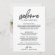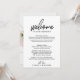 Estas tarjetas de carta y mapa de bienvenida con caligrafía caprichosa son perfectas para una bolsa de bienvenida de boda de destino. El diseño presenta tipografía elegante y rústica para un aspecto minimalista simple. La parte delantera de la tarjeta presenta una carta de bienvenida e itinerario. Incluya un mapa de su resort con ubicaciones clave anotadas en la parte posterior de la tarjeta.