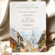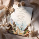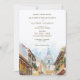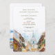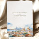 Fije el tono para su boda de destino de Cartagena con esta impresionante invitación a la boda. La tarjeta incluye una hermosa pintura acuática del icónico paisaje de Cartagena, con sus cúpulas históricas y sus rascacielos modernos, con un telón de fondo del sereno mar Caribe. La invitación está decorada con tonos azul océano, beige arena y amarillos cálidos de la costa colombiana. Esta invitación es una promesa de la vibrante y colorida celebración que viene.
