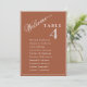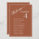 Bienvenido a un guión elegante para ayudar a sus huéspedes a encontrar su mesa con estas elegantes y modernas tarjetas con nombres de invitados. Tarjetas de doble cara para que los huéspedes puedan ver sus nombres desde ambos lados, delante o detrás. Fondo de terracota y texto blanco y un toque de sombra de caída sobre el número de tabla. Varias opciones de color. Tener todos los números de tabla en el mismo color o mezclar colores según el tema de color del evento. La tarjeta se imprime en la parte delantera y trasera (doble cara). Si tiene alguna pregunta de diseño, sólo tiene que enviar una charla y estaremos encantados de asistirle. letras blancas modernas de terracota, carta de bienvenida para los bodas, tarjetas gráficas de asiento 5x7, lista de asientos, plano de mesa boda, tarjetas de planeamiento de mesa, asignación de mesa encontrar su asiento