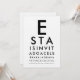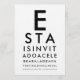 Invite a sus invitados de la manera más llamativa con esta Invitación de Fiesta de Tabla de Ojos Personalizada, inspirada en la icónica prueba de lectura de oftalmología. El diseño comienza con la clásica "E" en negrita y continúa con líneas progresivamente más pequeñas, al igual que una tabla de Snellen real, transformadas creativamente en los detalles de su evento. Personalice cada línea con el nombre, fecha, ubicación y mensaje de celebración para un anuncio inteligente, profesional y verdaderamente memorable.