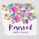 Esta señal de "reservado" de boda con flores moradas, rosadas y azules es perfecta para una boda con tema floral. El diseño es a doble cara (imprime en ambos lados) y presenta flores magenta brillante, rosa, morado ciruela y azul, y una fuente de letra script en negrita encantadora. Utilice estas tarjetas para reservar sillas o mesas en su ceremonia de boda o recepción. Diseñado con cuidado por Miriam en Fresh & Yummy Paperie. Por favor contácteme con cualquier personalización de diseño que necesite. Para artículos coordinados, por favor visite mi tienda Zazzle: