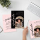 Simple y elegante escritura negra moderna, se basa en un fondo blanco, y alrededor de la foto de tu graduado. ¡Una adición perfecta a la decoración de tu fiesta de graduación!