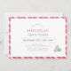 Esta moderna y sencilla invitación a casa abierta para navidades de vacaciones presenta un fondo blanco enmarcado por rayas de caramelo rojas diagnosticadas. El reverso presenta un fondo blanco con rayas verdes de menta. Personalízalo para tus necesidades. Puedes encontrar productos coincidentes en mi tienda.
