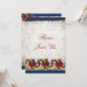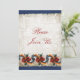 Elegante Invitación de Casa Abierta de Vacaciones en Fondo Sepia Floral con Acento de Rollo de Rosemaling Tradicional Noruego Escandinavo de Telemark en tonos de oro, verde y rojo sobre azul. Personalice esta invitación única y elegante escribiendo sus propios detalles en el reverso. ¡Ideal también para guardar en su álbum de recuerdos!