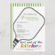 ¡Vamos a la cancha! Elija esta invitación para la Casa Abierta del Torneo de Pickleball para su cumpleaños, torneo, liga, jubilación, escapada de fin de semana o cualquier fiesta con tema de pickleball. Esta invitación es la forma perfecta de reunir a jugadores, familiares y amigos para un Gran Evento de Pickleball. El diseño presenta pelotas de pickleball de color verde claro.
