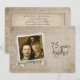 Invitación a casa abierta para celebrar las bodas de diamante (75 años) con marco de fotos personalizado al estilo antiguo y ramo de margaritas y perlas.