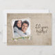 Invitación a casa abierta por el 20º aniversario de bodas con marco de foto personalizado al estilo antiguo y ramo de margaritas y perlas.