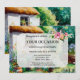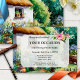Una invitación artística para una fiesta de verano con una pintura de una cabaña con jardín. Hermoso para una celebración en el patio trasero o en el jardín para un cumpleaños, nueva casa o simplemente porque sí.