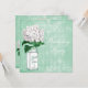 Elegantes invitaciones para fiestas de cumpleaños verdes y blancas de menta para mujeres y chicas adolescentes con un lindo frasco de albañil de vidrio blanco y verde y bonito hidrangea vintage ilustracion de flores en un elegante y elegante collage de colores verde de menta chic con bellas decoraciones ornamentadas blancas, una libélula y escritura desvanecida en un elegante patrón de arlequín. En el reverso de las invitaciones hay una glamorosa estampada de perlas blancas y una alfombra de encaje con texto para que usted pueda personalizar con los detalles de su fiesta. Clásico, moderno, de moda, invita a la perfección para eventos de primavera, verano, otoño e invierno. Todo el texto se puede personalizar fácilmente para satisfacer sus necesidades y puede cambiar el estilo de fuente, color y tamaño de fuente si lo desea. Si necesita ayuda para personalizar su producto, póngase en contacto conmigo a través de mi tienda y le ayudaré. Estera de perlas, ©Hazel Kinvig-Paul www.design-a-dream.co.