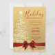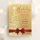 Elegantes Navidades / Open House / Dinner Party Invitation plantilla con "Árbol de Navidad dorado con luces de hadas" y cinta roja. Impresiona a tus amigos con este sofisticado y elegante diseño de invitación. ¡personalizable total!