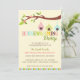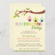 Esta invitación es muy moderna y se ilustra con bonitas casas de pájaros colocadas en una rama de árbol. Colorido, es ideal para familias con niños.