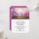 Invitación a la fiesta de cumpleaños con una imagen escénica de un pacífico lago morado. Rodeado de cerezos y cascadas.