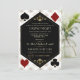 Glam, Vintage card design Great and Casino themed. It features Roaring 1920's old Hollywood Art Deco style shape, royal faux gold fleur-de-lis as dividers, vintage fonts, on a gold white Art Deco pattern, as well playing cards suits with a golden edges. Use Personalize tool to add your information. For more, visit please, my Casino Poker Wedding Collection.